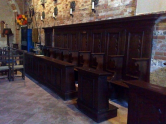 Restaurati gli scranni, gli inginocchiatoi e le panche del Tempio