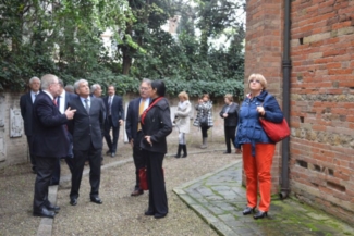 Per loro, il Priore aveva preventivamente spianato la strada procurando assistenza logistica per l’albergo, il ristorante, la corona d’alloro ed il trombettiere. Ora li accoglie sul sagrato come vecchi commilitoni conosciuti da sempre ed a loro dice del Tempio, della sua storia millenaria e della sua rinascita a cura della nostra Cavalleria, del priorato, della commemorazione di San Giorgio appena passata.