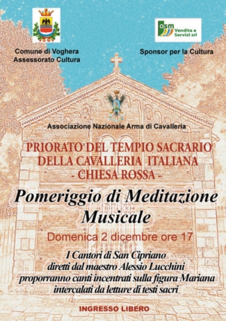 Domenica 2 dicembre, presso il Tempio Sacrario della Cavalleria Italiana, si terrà un concerto tenuto dai cantori di San Cipriano diretti dal maestro Lucchini, già compositore di un'opera dedicata a San Giorgio Patrono Celeste dell'Arma di Cavalleria.